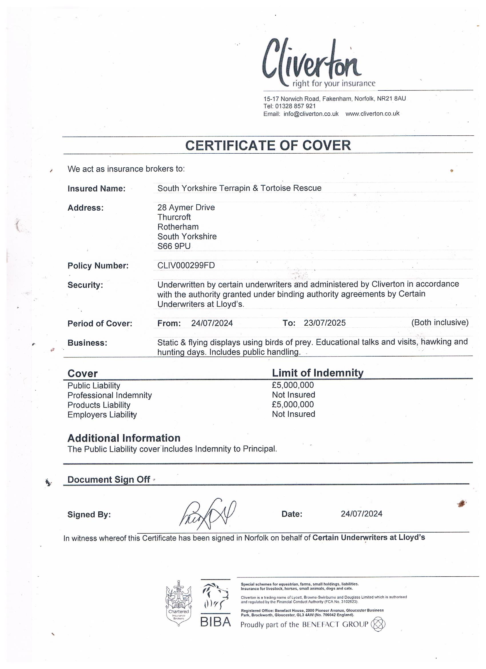 Our Licences & certificates